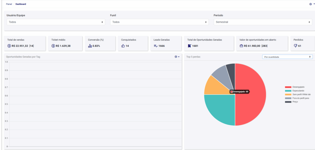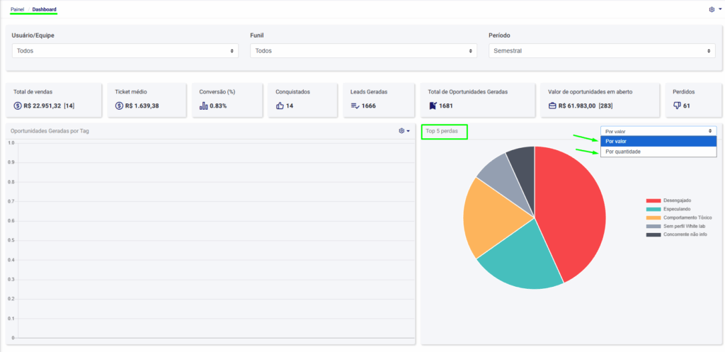 O gráfico de TOP 5 Perdas de Oportunidades foi atualizado e agora você pode: