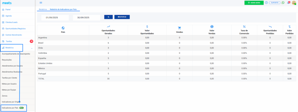 👉 Acesse em Relatórios > Indicadores por País e aproveite essa nova funcionalidade!