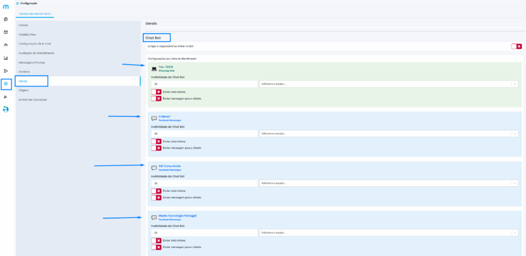 Agora é possível configurar o tempo de inatividade do Chatbot de forma personalizada por canal ou linha de atendimento.