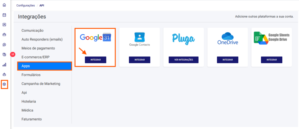 2 – Na tela, escolha a opção Google Agenda para a integração.