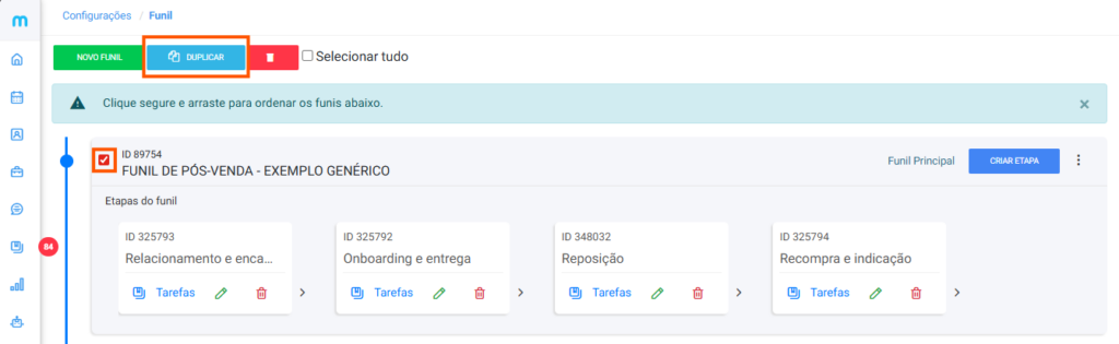 Duplicar (clonar) os funis no CRM Meets é uma tarefa rápida e simples! Confira: